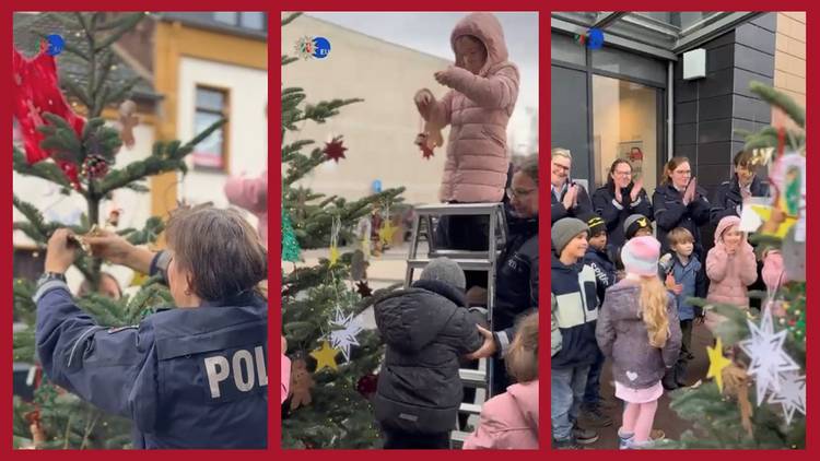 Auch in diesem Jahr war eine OGS-Gruppe der ersten Klassen – pünktlich zum 1. Advent wieder im Einsatz, um den Weihnachtsbaum vor der Polizei in Mechernich zu schmücken. Wie schon in den vergangenen Jahren gingen die Kinder voller Energie, guter Laune und natürlich mit selbstgebasteltem Baumschmuck im Gepäck zur Baumschmück-Aktion und wurden dort von der Polizei herzlich empfangen. Als echte „Baumschmück-Spezialeinheit“ legten sie sofort los: motiviert, flink und mit ganz viel Kreativität. Gemeinsam wurde dekoriert, gelacht und sogar gesungen.